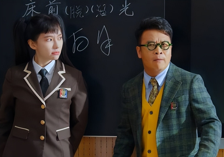 举着粉笔却填不完整古诗词时,张浩把角色的紧张、纠结和视死如归都演绎得喜感十足。
